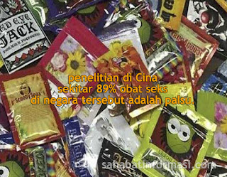 - penelitian di Cina sekitar 89% obat seks di negara tersebut adalah palsu.
