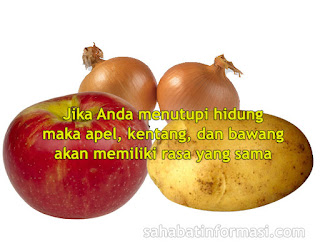 - Jika Anda menutupi hidung maka apel, kentang, dan bawang akan memiliki rasa yang sama