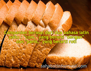 - Companion berasal dari dua bahasa latin yaitu : "com," yang berarti "dengan" dan "panis," yang berarti roti