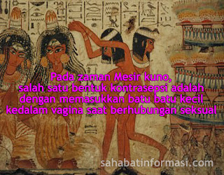 - Pada zaman Mesir kuno, salah satu bentuk kontrasepsi adalah dengan memasukkan batu batu kecil kedalam vagina saat berhubungan seksual.