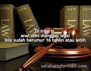 - Di Inggris, anal seks dianggap legal bila sudah berumur 16 tahun atau lebih