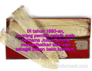 - Di tahun 1880-an, seorang pemilik pabrik sosis bernama Julius Schmid memanfaatkan sisa usus sebagai bahan baku kondom.